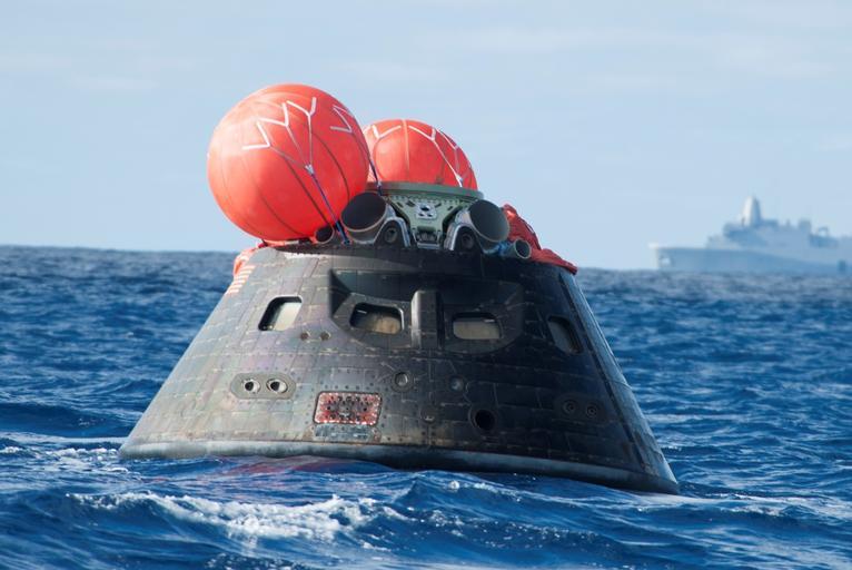 Keywords: Orion in fase di recupero.jpg en NASA's Orion spacecraft awaits the U S Navy's USS Anchorage for a ride home Orion launched into space on a two-orbit 4 5-test flight at 7 05 am EST on Dec 5 and returned safely splashed down in the Pacific Ocean where a combined team from NASA the Navy and Orion prime contractor Lockheed Martin retrieved it for return to shore It's now being transported back to shore on board the Anchorage It is expected to be off loaded at Naval Base San Diego on Monday 2014-12-05 08 52 29 https //www flickr com/photos/nasaorion/15781475217/ U S Navy other versions PD-USGov-Military-Navy DEFAULTSORT 20141205085229 Uploaded with UploadWizard Landing and recovery of Exploration Flight Test-1 Taken with Nikon D3x Photographs taken on 2014-12-05 USS Anchorage LPD-23