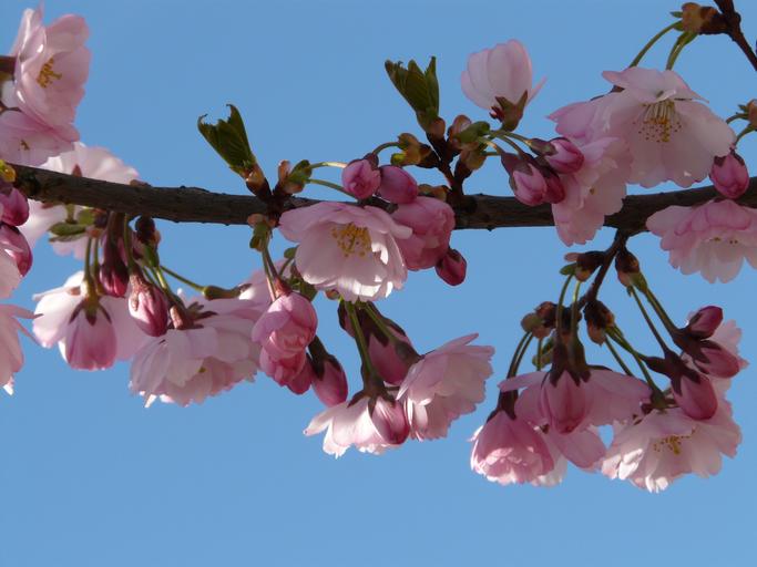 Keywords: ornamental cherry flowering twig bud flowers pink japanese cherry trees cherry blossom blossom bloom road spring sky japanese flowering cherry prunus serrulata oriental cherry east asian cherry
