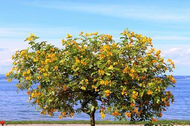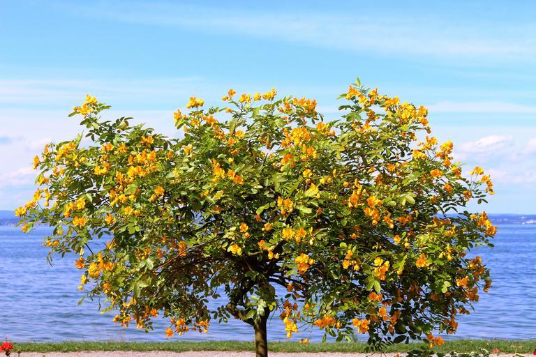 Keywords: ornamental tree tree nature flowers yellow sky lake romanshorn switzerland