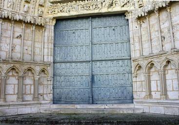 Keywords: ornate doorway grand entrance big wooden doors blue doors church doors church architecture stone carvings