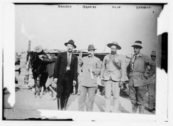 | Keywords: Oroszco; Baniff; Villa; Garibaldi (LOC).jpg Bain News Service publisher - Oroszco; Baniff; Villa; Garibaldi - between 1910 and 1915 - 1 negative glass ; 5 x 7 in or smaller Pascual Orozco e i suoi colonnelli Oscar Braniff Pancho Villa e Peppino Garibaldi fotografati il 10 maggio 1911 dopo la presa di Ciudad Juárez durante la Rivoluzione messicana <b>Notes </b> Title from unverified data provided by the Bain News Service on the negatives or caption cards Forms part of George Grantham Bain Collection Library of Congress <b>Subjects </b> Mexico <b>Format </b> Glass negatives <b>Rights Info </b> No known restrictions on publication <b>Repository </b> Library of Congress Prints and Photographs Division Washington D C 20540 USA <a href http //hdl loc gov/loc pnp/pp print >hdl loc gov/loc pnp/pp print</a> General information about the Bain Collection is available at <a href http //hdl loc gov/loc pnp/pp ggbain >hdl loc gov/loc pnp/pp ggbain</a> <b>Persistent URL </b> <a href http //hdl loc gov/loc pnp/ggbain 09417 >hdl loc gov/loc pnp/ggbain 09417</a> <b>Call Number </b> LC-B2- 2227-2 originally posted to Flickr as http //flickr com/photos/8623220 N02/2162707307 Oroszco; Baniff; Villa; Garibaldi LOC 1910-01-01 00 00 00 http //flickr com/photos/8623220 N02 The Library of Congress User Flickr upload bot/upload-pd 04 47 26 February 2009 UTC Eluser PD-Old José Clemente Orozco Pancho Villa Peppino Garibaldi Alberto Braniff Ciudad Juárez |
