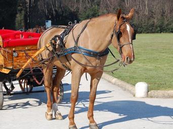 Keywords: Orsopapera-cavallo 003.JPG en Horse-drawn carriage it Carrozza e cavallo own Orso della campagna e Papera dello stagno 2009-02-28 100px Carriages in Italy Chestnut horses Bodyclipped horses