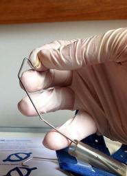 Keywords: braces headgear Orthodontic headgear J hook being fitted with elastic bands for insertion into the patients mouth Orthodontic headgear J hook being fitted with elastic bands for insertion into the patients mouth