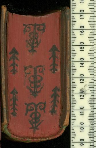 | Keywords: Orthodox Eastern Church -- Liturgy -- --Moskva - 7167, i.e. 1659.- - - Tail edge (1111a7).jpg Style Centre and cornerpiece Religious miscellaneous; Caption Tail edge; Colour Unspecified; Edge Red Gilt Black exhibition history Decorative Technique Tooled in blind Tooled in gold; Cover Material Leather unspecified Handwritten note on leave 2 some bits lost April 6th 1663 a Russian Almanach of Saints Bevelled wooden boards Traces of 2 clasps catching on to upper cover Combmarbled endleaves 2 Ink ms shelf marks u;203 7 HHL spine damamaged Sewn on 3 douoble sewing supports Design on upper and lower covers differs Upper cover probably tooled in poor quality gold or silver which has oxidised Lower cover is blind tooled object history Text 1559; Moscow; Sloane Hans 1660-1753 object type Cc-zero place of creation Binding Russia place of discovery Unspecified British Library image http //www bl uk/catalogues/bookbindings/LargeImage aspx RecordId 020-000017685 ImageId ImageId 56667 Copyright BL Orthodox Eastern Church -- Liturgy -- Moskva 7167 i e 1659 Uploaded with GWToolset Orthodox Eastern Church -- Liturgy -- Moskva 7167 i e 1659 - Tail edge 1111a7 http //www webarchive org uk/bldatasets/bindings/1111a7tail jpg Bookbinding 17th-century bookbinding British Library Bookbindings |