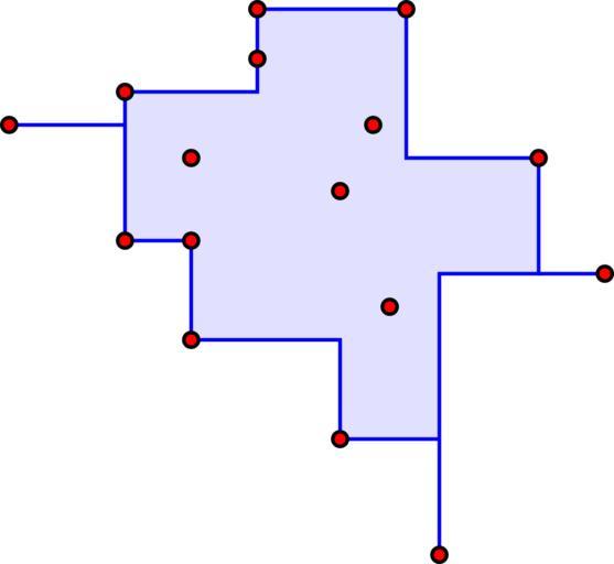| Keywords: Orthogonal-convex-hull.svg The orthogonal convex hull of a point set and also the tight span of the points when distances are measured using the Manhattan metric en wikipedia 2006-11-09 David Eppstein wikipedia en David Eppstein original upload log page en wikipedia Orthogonal-convex-hull svg 2007-01-21 01 35 David Eppstein 334×307×0 2880 bytes <nowiki>Still more svg cleaning expand entities</nowiki> 2007-01-21 01 09 David Eppstein 334×307×0 2246 bytes <nowiki>More svg cleaning useless style attr</nowiki> 2007-01-21 00 57 David Eppstein 334×307×0 2305 bytes <nowiki>Attempt fix by adding xmlns and version attrs to svg element</nowiki> 2007-01-21 00 56 David Eppstein 334×307×0 2304 bytes <nowiki>Attempt fix by adding xmlns and version attrs to svg tag </nowiki> 2006-11-09 01 06 David Eppstein 334×307×0 2251 bytes <nowiki>The orthogonal convex hull of a point set </nowiki> Metric geometry Convex geometry Computational geometry Files by User David Eppstein from en wikipedia |