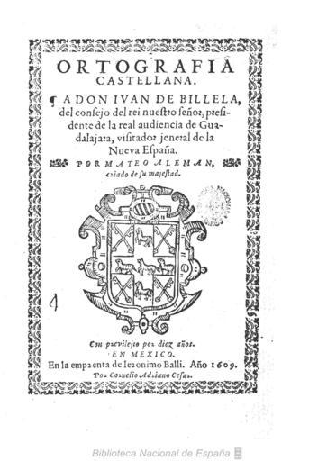 | Keywords: Ortografia castellana Aleman 1609.jpg es Ortografia Castellana Texto impreso / por Mateo Aleman - En Mexico en la imprenta de Ieronimo Balli por Cornelio Adriano Cesar 1609 - 7 83 h 1 h de grab ; 4º Signatura R/5060 1609 http //bdh bne es/bnesearch/detalle/bdh0000054270 - Biblioteca Digital Hispánica Biblioteca Nacional de España Alemán Mateo 1547-1615 other versions BNE PD-old-100 Uploaded with UploadWizard Spanish language | ||||