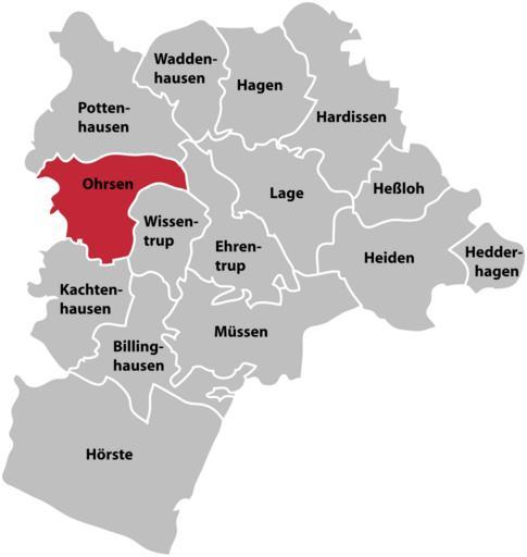 Keywords: Ortsteile Lage (Lippe) Ohrsen.svg Ortsteile der Stadt Lage Lage von Ohrsen own 2010-03-28 de User DaBroMfld based on work of field PD-release Maps of Lage Lippe