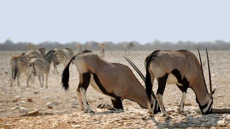 Keywords: oryx africa namibia nature dry national park animal water hole drink wild animal