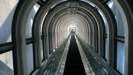 Keywords: osaka japan building interior inside people mover glass arched tunnel architecture modern