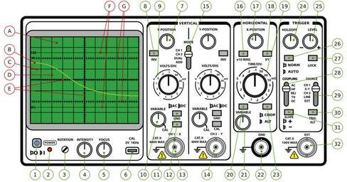 | Keywords: Oscilloscope Front Panel Numbered.svg The Front Panel of CRT Oscilloscope with the Controls and Display Numbered See this Wikibook for meanings own 2006-05-22 jjbeard PD <gallery> Oscilloscope_Front_Panel svg Same diagram without numbers Oszi Geräusch svg Oszi Klang svg Oszi Ton svg Oszi Knall svg </gallery> Oscilloscopes Language-neutral diagrams |