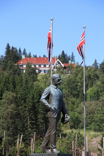 Keywords: oslo norway holmenkollen sculpture fig man flags