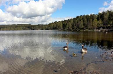 Keywords: oslo sognsvann nordmarka visitoslo rest romance norway lake alexandra gutthenbach-lindau water geese holiday scandinavia trees