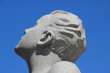 Keywords: oslo vigelandsanlegget vigelandpark view forward sculpture profile man