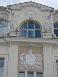 Keywords: Ostoia2.JPG Ге б «Астоя» на будынку па п езалежнасьці енск ru Ге б Остоя на здании на п езависимости инск own Gruszecki 2010-05-27 cc-zero Ostoja coat of arms Unichoŭski House Reliefs in Minsk Windows in Minsk