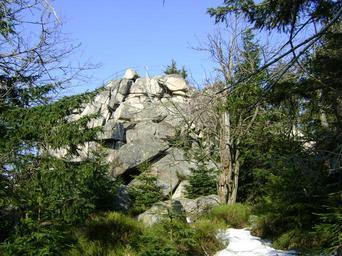 Keywords: Ostra Mała mit.JPG pl Ostra Mała-wzniesienie w południowo-zachodniej Polsce w Sudetach Zachodnich w Rudawach Janowickich woj dolnośląskie Skała na szczycie wzniesienia z punktem widokowym own Timaska 2009-04-14 Rudawy Janowickie