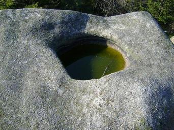 Keywords: Ostra Mała mit1.JPG pl Kociołek wietrzeniowy w skale na wzniesieniu Ostra Mała w południowo-zachodniej Polsce w Sudetach Zachodnich w Rudawach Janowickich woj dolnośląskie own Timaska 2009-04-14 Rudawy Janowickie