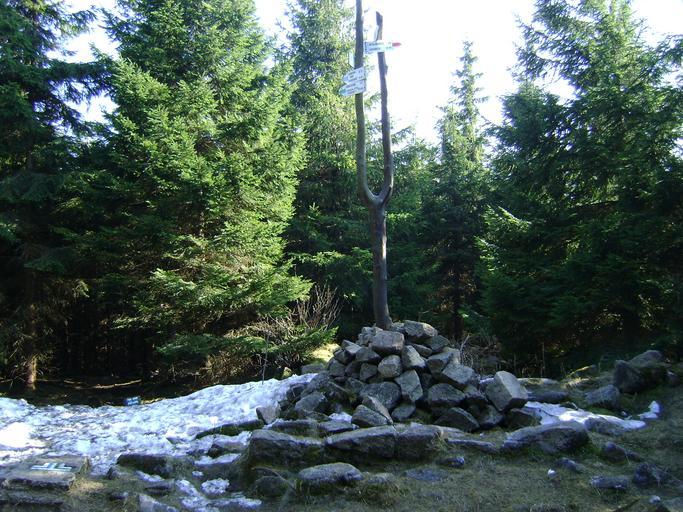 Keywords: Ostra Mała mit.3.JPG pl Węzeł szlaków poniżej szczytu wzniesienia Ostra Mała w południowo-zachodniej Polsce w Sudetach Zachodnich w Rudawach Janowickich woj dolnośląskie own Timaska 2009-04-14 Rudawy Janowickie