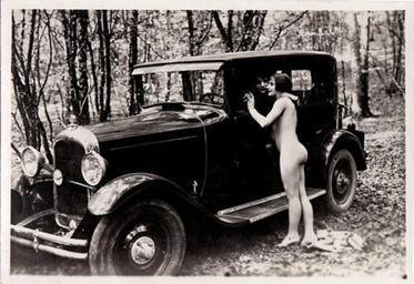| Keywords: Ostra woman leaning on car.jpg en A 13 x 18 photograph of a naked woman leaning against an antique car seemingly talking to another woman inside de Foto einer nackten Frau die an einem Oldtimer lehnt und anscheinend mit einer anderen Frau im Auto spricht c 1935 http //www leslarmesderos com/site/sscat2_en php id 15 themebase 2 Ostra Studio PD-old Uploaded with UploadWizard Nude or partially nude women wearing high-heeled shoes Biederer Studio Citroën Type C4 Naked female buttocks Black and white photographs of nude women Females with automobiles |