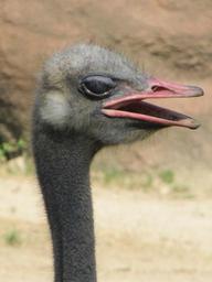 Keywords: ostrich bird head beak neck flightless feather eyes animal close up enclosure zoo profile portrait
