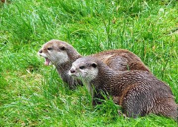 Keywords: otters animals mammals two angry wildlife vertebrate aquatic swim