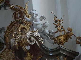 | Keywords: Ottobeuren basilika ottobeuren altar of st nicholas of myra 008.JPG Decorations above the Altar of Saint Nicholas of Myra at Ottobeuren Abbey Ottobeuren Germany Own Mattana 2009-04-18 Images by Mattana-Ottobeuren Germany Altar of Saint Nicholas of Myra in Basilika Ottobeuren Baroque statues in Basilika Ottobeuren |