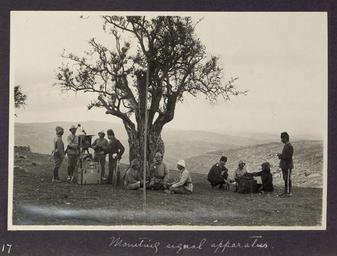 | Keywords: Ottoman forces mounting signal apparatus World War I.jpg Photograph of Ottoman troops mounting signal apparatus ppmsca 13709 LC-DIG-ppmsca-13709-00230 digital file from original on page 65 no 229 http //memory loc gov/pnp/ppmsca/13700/13709/00230v jpg 1917 American Colony Jerusalem PD-Ottoman World War I forces of the Ottoman Empire in Egypt and Palestine World War I military communications Ottoman Army World War I in Palestine and the Sinai ppmsca 13709 | ||||