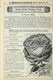 | Keywords: Our new guide to rose culture (15949167094).jpg Tb6DINGEESC0NARD b WE5TERnvE pA <br> Of Special Merit <br> \ I YBRID PERPETUALS are considered the most valuable of all hardy plants They are <br> H ” I distinguished by their vigorous upright growth and large bold flowers frequently <br> I I measuring 5 to 6 inches in diameter They thrive and succeed in all localities and are <br> entirely hardy in any part of the country and will live through severe Winters with a <br> light protection of leaves or coarse manure Some varieties do not bloom until the second year <br> but when fully established they all bloom freely at the usual time early in the season and con- <br> tinue to bloom during the Summer and Autumn months Hybrid Perpetuals will bear a con- <br> siderable amount of hardship and neglect but improve greatly with good cultivation and rich <br> soil They should invariably be planted in open ground as they are not suitable for house cul- <br> ture We have by far the choicest collection of Hybrid Perpetuals in the country and recommend <br> those described below as the best varieties for general cultivation Remember our Roses are <br> strong plants and none are grown in pots less than 2 4 inches in diameter and many are grown <br> in 3-inch pots <br> r OI/ P of all Roses on this page except where noted 30 cts each; any 3 for 50 cts ; <br> r rvB ti 7 for »1; two-year-old plants 35 cts each; 3 for S 1; 3 50 per dozen by <br> Express at purchaser's expense Only varieties naarked with a star can be furnished <br> in twro-year-old i lants <br> Abel Carriere <br> A Grand Old Rose <br> One of the best; flowers are extra large <br> very double full and sweet ; color dark <br> crimson passing to velvety maroon <br> Anna Alexieff <br> Flowers are very double and full exc ed- <br> ingly sweet; noted for their clear bright pink <br> color <br> Alfred Colomto <br> Justly celebrated as one of the very finest; <br> extra-large round flowers very double and <br> full ; color clear cherry red passing to bright <br> rich crimson ; very fragrant <br> American Beauty <br> The Largest Sw eetest and Best of all <br> Hardy Koses <br> This is perhaps the grandest and most <br> beautiful Rose now known It is a genuine <br> Hardy Ever-blooming Rose For immen- <br> sity in size rich color exquisite form and <br> delicious fragrance it stands without an equal <br> It is a quick and bushy grower and a continuous <br> bloomer; makes magnificent buds and large <br> deep double flowers and is valuable both for <br> house and garden culture Color is a rich rosy <br> crimson shaded and veined in the most charming <br> fashion ; fragrance is wonderlully sweet not sur- <br> passed by any Rose we know <br> SPECIAL NOTICE ” The true stock of Amer- <br> ican Beauty Rose is both scarce and valuable We <br> guarantee all the plants we send out to be true <br> to name so that all those who have never see / <br> this superb Rose can order with a certainty t t <br> they will receive fine young plants stocky stro ig <br> and sturdv absolutely true to tzame 25 cts each ; <br> 3 for 60 cts ; 5 for 1; strong two-year-old plants <br> 50 Cts each <br> Antoine Mouton <br> Color beautiful bright clear pink; reverse of <br> petals silvery rose ; very sweet ; in fact an unusual <br> Rose in every way <br> Baronne de Bonstettiu <br> Splendid large flowers very double and full ; <br> rich dark red passing to deep velvety maroon ; highly <br> scented and very beautiful 43875651 149643 77861 Page 64 Text http //www biodiversitylibrary org/page/43875651 1891 10 5962/bhl title 77861 Dingee Conard Co ; Henry G Gilbert Nursery and Seed Trade Catalog Collection Biodiversity Heritage Library Our new guide to rose culture 1900 Garden Stories Catalogs Dingee Conard Co Flowers Nurseries Horticulture Nursery stock Roses Seeds Trade catalogs U S Department of Agriculture National Agricultural Library bhl page 43875651 dc identifier http //biodiversitylibrary org/page/43875651 bhlGardenStories American Beauty BHLinbloom dingee conard co nurseries horticulture u s department of agriculture national agricultural library bhlgardenstories american beauty bhlinbloom Information field Flickr posted date ISOdate 2015-02-18 Check categories 2015 August 24 CC-BY-2 0 BioDivLibrary https //flickr com/photos/61021753 N02/15949167094 2015-08-24 02 54 48 cc-by-2 0 PD-old-70-1923 Our new guide to rose culture 1891 Photos uploaded from Flickr by Fæ using a script |