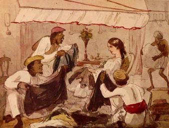 | Keywords: Ourclothmerchant.jpg en Our Station from 'Curry and Rice on Forty Plates or The Ingredients of Social Life at Our Station in India by Captn Geo F Atkinson'; the frontispiece ; a list of the contents A series of colored prints depicting British colonial life in a small North Indian station drawn by George Franklin Atkinson 1822-1859 and published in 1858 with later reprints The images below sometimes cut off small bits of the edges of the originals Our Agriculturalists Our Ball Our Band Our Bath Our Bazar Our Bedroom Our Burra Khanah Our Cloth Merchant Our Coffee Shop Our Colonel Our Colonel's Wife Our Cook Room Our Departure for Home Our Doctor Our Doctor's Wife Our Farm Yard Our Garden Our Invalid Major Our Joint Magistrate Our Judge Our Judge's Wife Our Magistrate Our Magistrate's Wife Our Mall Our Missionary Our Moonshee Our Nuwab Our Pack of Hounds Our Padre Our Pig Sticking Our Race Course Our Sporting Griff Our Stage Coaching Our Theatricals Our Tiger-Shooting Our Travellers' Bungalow Our Wedding Source ebay Oct 2004 1822-1859 and published in 1858 with later reprints http //www columbia edu/itc/mealac/pritchett/00routesdata/1800_1899/dailylife_drawings/ourstation/ourstation html George Franklin Atkinson 1822-1859 PD-Art Uploaded with UploadWizard George Francklin Atkinson 'Curry and Rice on Forty Plates or The Ingredients of Social Life at Our Station in India' London John B Day 1858 |