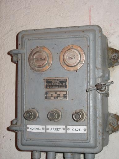 | Keywords: Ouvrage de Sainte-Agnes ventilation equipment.jpg en Equipment for ventilation in the maginot fort of Sainte-Agnès Alpes-Maritimes France Some switches let filter air with toxic gazes fr Équipement de commande de ventilation de l'ouvrage de Sainte-Agnès Alpes-Maritimes Des commandes permettent d'évacuer un air chargé de gaz toxiques own Tangopaso 2012-04-01 14 02 51 Ouvrage de Sainte-Agnès Ventilation | ||||