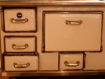 Keywords: oven stove fireplace doors folding enamel old white antique cook heat fire kitchen