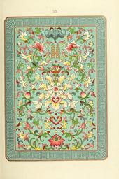| Keywords: Owen Jones - Examples of Chinese Ornament - 1867 - plate 019.png 018 XIX 19 020 From a china Dish the pattern being stamped or engraved on the clay before colouring This is a specimen of a style of ornament of which there are to be found immense varieties It is probably much more modern than the specimens already described We have still the instinct of triangular composition but it is not so decidedly marked; the centre flower occupies more relative space and the stems out of which the flowers spring instead of flowing onwards in a series of volutes often re-enter and return upon themselves This principle is essentially Chinese whilst the flowing line is common to the Arabian Moresque Persian and Indian styles The border on the edge of the dish is almost Greek PD-old-100-1923 Floral designs in China Porcelain designs Greek key |
