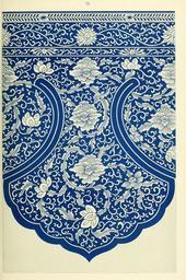| Keywords: Owen Jones - Examples of Chinese Ornament - 1867 - plate 006.png 005 VI 6 007 Part of a pendant Ornament round the top of a magnificent blue-and-white china cistern In the upper border the lines run in one direction round the bowl In the lower one continuous main stem runs through the general forms embracing all the flowers which are geometrically arranged The broad blue line which forms the boundary of the composition is also continuous; and in the form of a pendant arch recalls a form which is common to the Arabian Persian Moresque and indeed all Oriental art The treatment of the shading of the flowers is also Indian in character PD-old-100-1923 Floral designs in China Blue and white porcelain Ceramic bowls Porcelain of China |