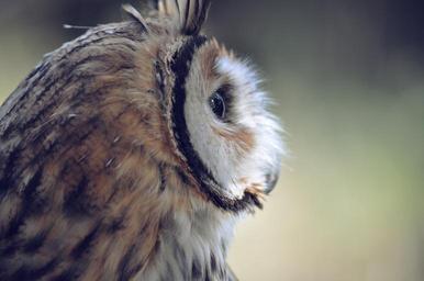 Keywords: owl bird head face wildlife animal feathers nature plumage wise wisdom portrait watching looking