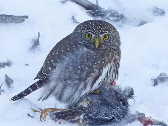 Keywords: owl young animal bird bird of prey wildlife close-up nature outdoors winter snow cold feathered
