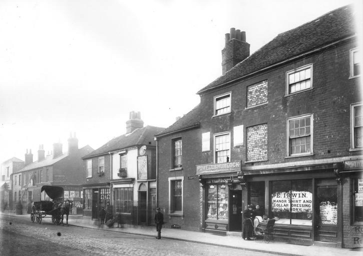 | Keywords: Oxford Road, Reading, 1902.jpg en Oxford Road Reading North side 1902 No 66; No 58; No 56; No 54; the corner of Thorn Street; No 52a Charles Shepherd grocer ; No 52 Frank Thake signwriter ; No 50; No 48 R LLoyd and Son tobacconists with sign for Powell and Hurlock above ; the entrance to Brick Court; No 46 Henry Irwin collar laundry A covered wagon waits at the corner of Thorn Street A lady with a wickerwork pram talks to the lady at the collar laundry 1900-1909 photograph by Walton Adams 1902 http //readingimages epixtech co uk/extra/test3 html Reading Borough Libraries Creator Walton Adams PD-old-70 Oxford Road Reading Shops in Reading Reading in the 1900s 1902 in England 1902 photographs Walton Adams |