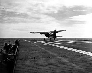 | Keywords: OY-2 Sentinel takeoff.jpg U S Marine Corps OY-2 Sentinel spotter plane takes off from the USS Sicily CVE-118 during operations in the Yellow Sea off the west coast of Korea 22 September 1950 The Sicily was then supporting the campaign to recapture Seoul http //www history navy mil/photos/events/kowar/50-unof/un-5s htm Land Operations around Seoul September - October 1950 The Korean War 1950-1953 Naval Historical Center Department of the Navy <br> http //www history navy mil/photos/images/g420000/g420239 jpg g420239 jpg 1950-09-22 United States Navy Official U S Navy Photo 80-G-420239 As a work of the U S Navy this photo is in the public domain Now in the U S National Archives PD-USGov-Military-Navy USS Sicily CVE-118 Stinson L-5 Sentinel |