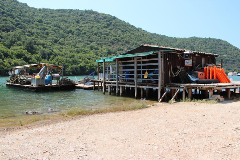 Keywords: oyster shack bay inlet coast fishing house nautical boat oyster seafood water istria croatia