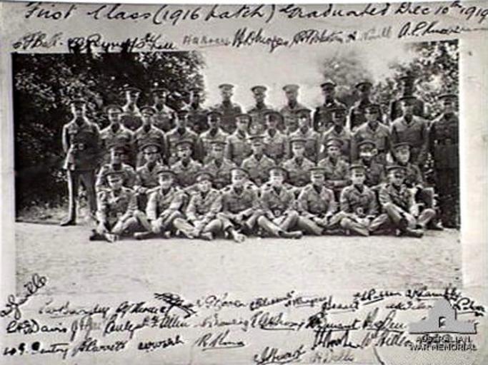 | Keywords: P01152.001McCauleyDuntroon1919.jpg Duntroon ACT Group portrait of Duntroon Military Cadets First Class 1919 who entered the Royal Military College RMC in 1916 and graduated 1919-12-10 Signatures round the border C F Bell C G Reynolds E C Ladd H M Hoare H D Morgan P P Robertson A Nevill A E Knox R C Kremmer A W Greville E W Bundey C M Thomas R G Booker E Pleasant A V Burgess G Isaacs G Patten A K Lambly C H G Davis J D J Mccauley S F Allen S R Dowling R G H Irving H F Durant Svgden W J Godsell W G Gentry J E Barrett A W Walsh R King A J Stewart H Wells T J Bourke W Hilless P H G Cardale P01152 001 1919-12-10 Not stated Donor J McNair PD-Australia the Government of Australia <small>Per the link above to the Australian government site where the image was found the Australian government considers this to be public domain worldwide http //www awm gov au/copyright/</small> John McCauley RAAF officer Black and white photographs Royal Military College Duntroon People of the Australian Army |