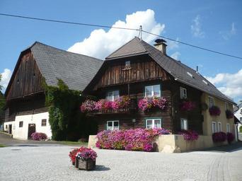 Keywords: P1050829 Huebmannhube Scharfetter.JPG en farmershouse with flowers in Schardorf de Bauernhaus Huebmannhube mit Blumen Schardorf own Obersteirer 2009_07_21 Cc-zero Farmhouses in Styria Gai Styria