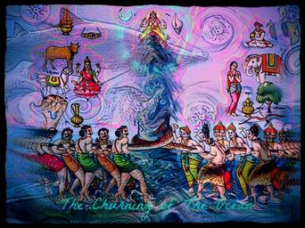 | Keywords: god brahman mahabharata churning-of-ocean churningofocean indra snakes photo border "GOD'S LIVING BIBLE ---- THE THIRD TESTAMENT ----- RESEARCH LIBRARY" ©* HINDUISM THE MAHABHARATA of Krishna-Dwaipayana Vyasa GOD'S SELECTIONS FROM THE MAHABHARATA – FOR PAINTED LESSONS © “God / Brahman Speaking To Anne Terri Through The Holy Spirit: One of the favorite stories of The Mahabhaata is of The Churning of The Ocean of Milk to obtain Amrita. For those who have not read this in a long time, it is placed below for your enjoyment, and is in color for ease of reading. The link provided is to the entire story, and as you well know, the Astika Parva is extensive, and to read this all at once is overwhelming. Maybe you will enjoy instead the painting depicting this event. AMEN” THE ASTIKA PARVA Section XVII -XVIII THE CHURNING OF THE OCEAN "Sauti said, 'O ascetic, about this time the two sisters saw approaching near, that steed of complacent appearance named Uchchaihsravas who was worshipped by the gods, that gem of steeds, who arose at the churning of the Ocean for nectar. Divine, graceful, perpetually young, creation's master-piece, and of irresistible vigour, it was blest with every auspicious mark.' "Saunaka asked,'Why did the gods churn the Ocean for nectar, and under what circumstances and when as you say, did that best of steeds so powerful and resplendent spring?' "Sauti said,'There is a mountain named Meru, of blazing appearance, and looking like a heap of effulgence. The rays of the Sun falling on its peaks of golden lustre are dispersed by them. Decked with gold and exceedingly beautiful, that mountain is the haunt of the gods and the Gandharvas. It is immeasurable and unapproachable by men of manifold sins. Dreadful beasts of prey wander over its breasts, and it is illuminated by many divine life-giving herbs. It stands kissing the heavens by its height and is the first of mountains. Ordinary people cannot even think of ascending it. It is graced with trees and streams, and resounds with the charming melody of winged choirs. Once the celestials sat on its begemmed peak--in conclave. They who had practised penances and observed excellent vows for amrita now seemed to be eager seekers alter amrita (celestial ambrosia). Seeing the celestial assembly in anxious mood Nara-yana said to Brahman, 'Do thou churn the Ocean with the gods and the Asuras. By doing so, amrita will be obtained as also all drugs and gems. O ye gods, chum the Ocean, ye will discover amrita.'" "Sauti said, 'There is a mountain called Mandara adorned with cloud-like peaks. It is the best of mountains, and is covered all over with intertwining herbs. There countless birds pour forth their melodies, and beasts of prey roam about. The gods, the Apsaras and the Kinnaras visit the place. Upwards it rises eleven thousand yojanas, and descends downwards as much. The gods wanted to tear it up and use it as a churning rod but failing to do so same to Vishnu and Brahman who were sitting together, and said unto them, 'Devise some efficient scheme, consider, ye gods, how Mandara may be dislodged for our good.' "Sauti continued, 'O son of Bhrigu! Vishnu with Brahman assented to it. And the lotus-eyed one (Vishnu) laid the hard task on the mighty Ananta, the prince of snakes. The powerful Ananta, directed thereto both by Brahman and Narayana, O Brahmana, tore up the mountain with the woods thereon and with the denizens of those woods. And the gods came to the shore of the Ocean with Ananta and addressed the Ocean, saying, 'O Ocean; we have come to churn thy waters for obtaining nectar.' And the Ocean replied, 'Be it so, as I shall not go without a share of it. I am able to bear the prodigious agitation of my waters set up by the mountain.' The gods then went to the king of tortoises and said to him, 'O Tortoise-king, thou wilt have to hold the mountain on thy back!' The Tortoise-king agreed, and Indra contrived to place the mountain on the former's back. "And the gods and the Asuras made of Mandara a churning staff and Vasuki the cord, and set about churning the deep for amrita. The Asuras p. 59 held Vasuki by the hood and the gods held him by the tail. And Ananta, who was on the side of the gods, at intervals raised the snake's hood and suddenly lowered it. And in consequence of the stretch Vasuki received at the hands of the gods and the Asuras, black vapours with flames issued from his mouth. These, turned into clouds charged with lightning, poured showers that refreshed the tired gods. And flowers that also fell on all sides of the celestials from the trees on the whirling Mandara, refreshed them. "Then, O Brahmana, out of the deep came a tremendous roar like unto the roar of the clouds at the Universal Dissolution. Diverse aquatic animals being crushed by the great mountain gave up the ghost in the salt waters. And many denizens of the lower regions and the world of Varuna were killed. Large trees with birds on the whirling Mandara were torn up by the roots and fell into the water. The mutual friction of those trees also produced fires that blazed up frequently. The mountain thus looked like a mass of dark clouds charged with lightning. O Brahmana, the fire spread, and consumed the lions, elephants and other creatures that were on the mountain. Then Indra extinguished that fire by pouring down heavy showers. Read More: glbresearch.proboards.com/post/7276 "GOD'S LIVING BIBLE ---- THE THIRD TESTAMENT ----- RESEARCH LIBRARY" ©* THE MAHABHARATA NAMES WITHIN BOOK 1 ADI PARVA God / Brahman Speaking To Anne Terri Through The Holy Spirit: There are many names within The Mahabharata. The most important, shall be place here for those who are interested in knowing more. AMEN" Read more: glbresearch.proboards.com/thread/5733/names-book-1-adi-pa... THE MAHABHARATA of Krishna-Dwaipayana Vyasa “God / Brahman Speaking To Anne Terri Through The Holy Spirit: This will be an ongoing endeavor, which will take many hours to build. I