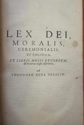 | Keywords: lex dei moralis ceremonialis et politica lexdeimoralisceremonialisetpolitica theodore de bèze theodoredebèze text writing document whiteboard P16-552 titre 3 Explore Medpro's 1467 photos on Flickr! theodoredebèze lexdeimoralisceremonialisetpolitica P16-552 titre 3 (6252918317).jpg P16-552 titre 3 https //www flickr com/photos/mediathequeprotestante/6252918317/ P16-552 titre 3 PD-old-100-1923 Images from Médiathèque protestante de Strasbourg Théodore de Bèze | ||||