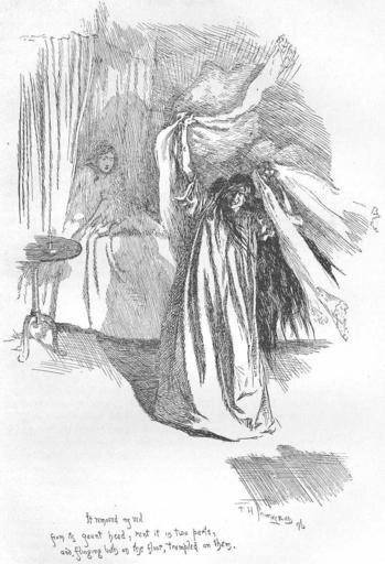 | Keywords: P272b.jpg en It removed my veil from its gaunt head rent it in two parts and flinging both on the floor trampled on them http //www gutenberg org/files/1260/1260-h/images/ F H Townsend 1868-1920 1847 Second edition of Jane Eyre PD-old Jane Eyre illustrated by F H Townsend |