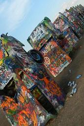 Keywords: P4 1608 cadillac Ranch Amarillo Tx spent aerosol cans litter the site www.route66west2east.com calitochicagoc California to Chicago .