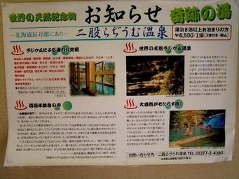 Keywords: 二股ラヂウム温泉広告P6190078.JPG 二股ラヂウム温泉広告(施設内) 唐山健志郎 2006.6.19 唐山健志郎 PD 参 サイト http //blogs yahoo co jp/autumn_snake_1995 Futamata-Radium Onsen