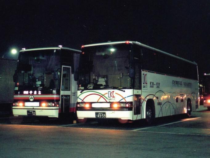 | Keywords: P-RU638BB-KantoBus-Narakotsu-Yamato.jpg Nara Kotsu 52 Yamato Kanto Bus 4959 EXPRESS YAMATO Hino P-RU638BB at Ashigara Service Area Photo by Cassiopeia_sweet 1994-02-27 Cassiopeia_sweet Buses at Ashigara Service Area Nara Kotsu Kanto Bus HINO Blue Ribbon tourist coach Buses in Japan photographed in 1994 Bus transport at night in Japan |