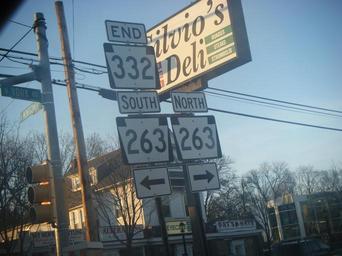 Keywords: PA 332 WB at PA 263.JPG Shield display at the western terminus of Pennsylvania Route 332 Montgomery Avenue at Pennsylvania Route 263 York Road in Hatboro Pennsylvania Own 2008-02-14 Dough4872 Pennsylvania Route 263 Pennsylvania Route 332