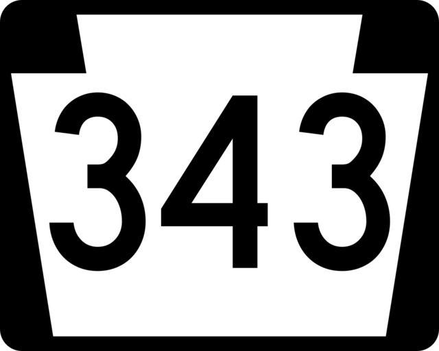 | Keywords: PA-343.svg 750 mm by 600 mm 30 in by 24 in Pennsylvania shield made to the specifications of the Manual on Uniform Traffic Control Devices MUTCD 2003 Edition sign M1-5 Uses the Roadgeek 2005 fonts United States law does not permit the copyrighting of typeface designs and the fonts are meant to be copies of a U S Government-produced work anyway Own 2006-11-29 TwinsMetsFan Public Domain Pennsylvania Route shields 343 | ||||