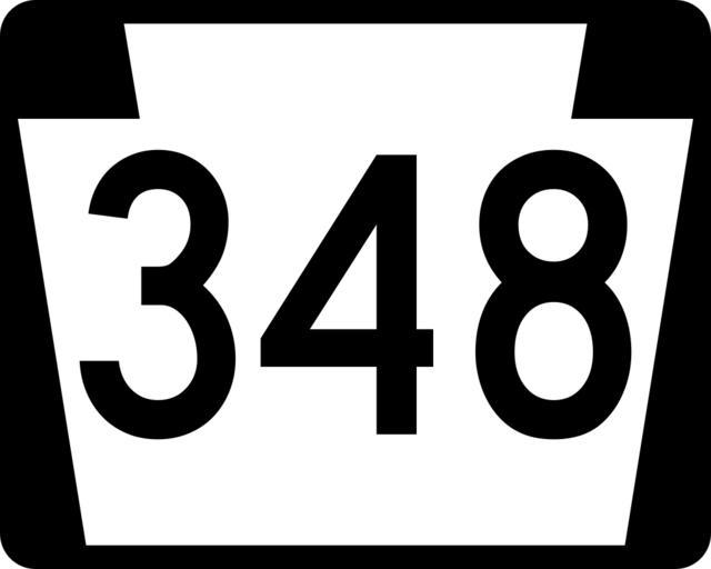 | Keywords: PA-348.svg 750 mm by 600 mm 30 in by 24 in Pennsylvania shield made to the specifications of the Manual on Uniform Traffic Control Devices MUTCD 2003 Edition sign M1-5 Uses the Roadgeek 2005 fonts United States law does not permit the copyrighting of typeface designs and the fonts are meant to be copies of a U S Government-produced work anyway Own 2006-08-05 TwinsMetsFan Public Domain Pennsylvania Route shields 348 348 number | ||||