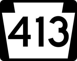 | Keywords: PA-413.svg 750 mm by 600 mm 30 in by 24 in Pennsylvania shield made to the specifications of the Manual on Uniform Traffic Control Devices MUTCD 2003 Edition sign M1-5 Uses the Roadgeek 2005 fonts United States law does not permit the copyrighting of typeface designs and the fonts are meant to be copies of a U S Government-produced work anyway own 2006-07-26 TwinsMetsFan Public Domain Pennsylvania Route shields 413 | ||||