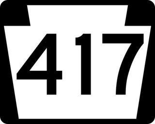 | Keywords: PA-417.svg 750 mm by 600 mm 30 in by 24 in Pennsylvania shield made to the specifications of the Manual on Uniform Traffic Control Devices MUTCD 2003 Edition sign M1-5 Uses the Roadgeek 2005 fonts United States law does not permit the copyrighting of typeface designs and the fonts are meant to be copies of a U S Government-produced work anyway Own 2006-11-29 TwinsMetsFan Public Domain Pennsylvania Route shields 417 | ||||